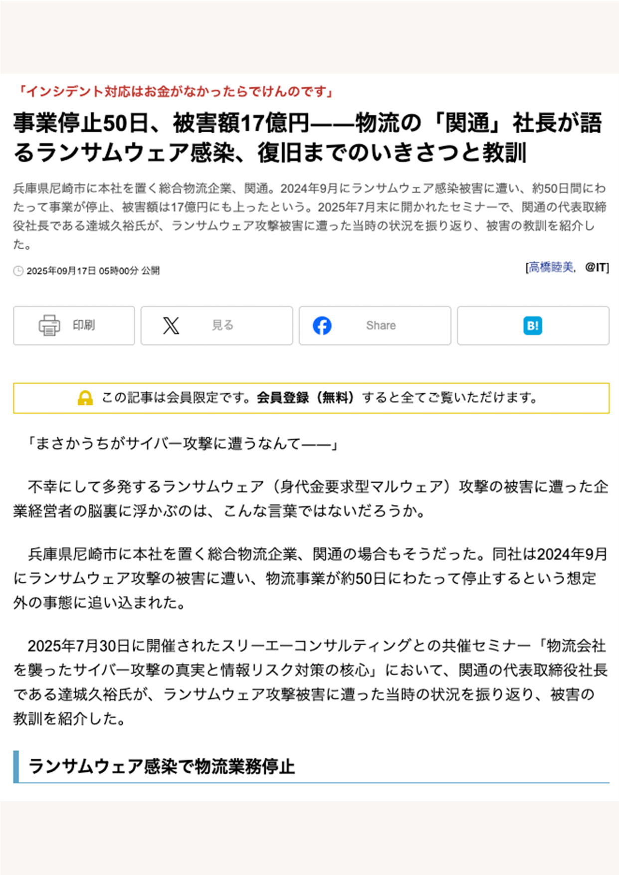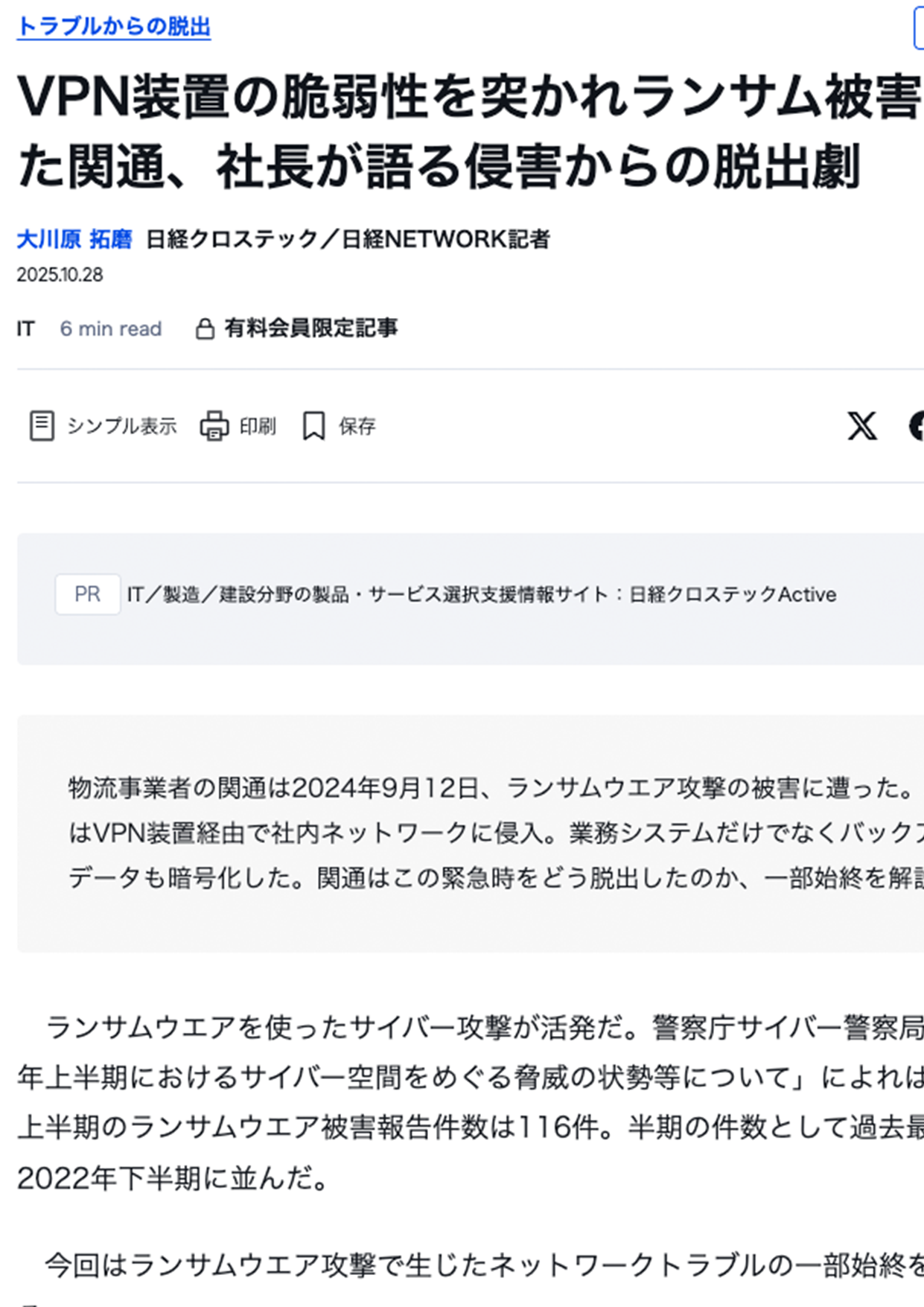 【メディア掲載】日経クロステック(xTECH)にて、弊社のサイバー攻撃復旧に関する連載記事が掲載されました